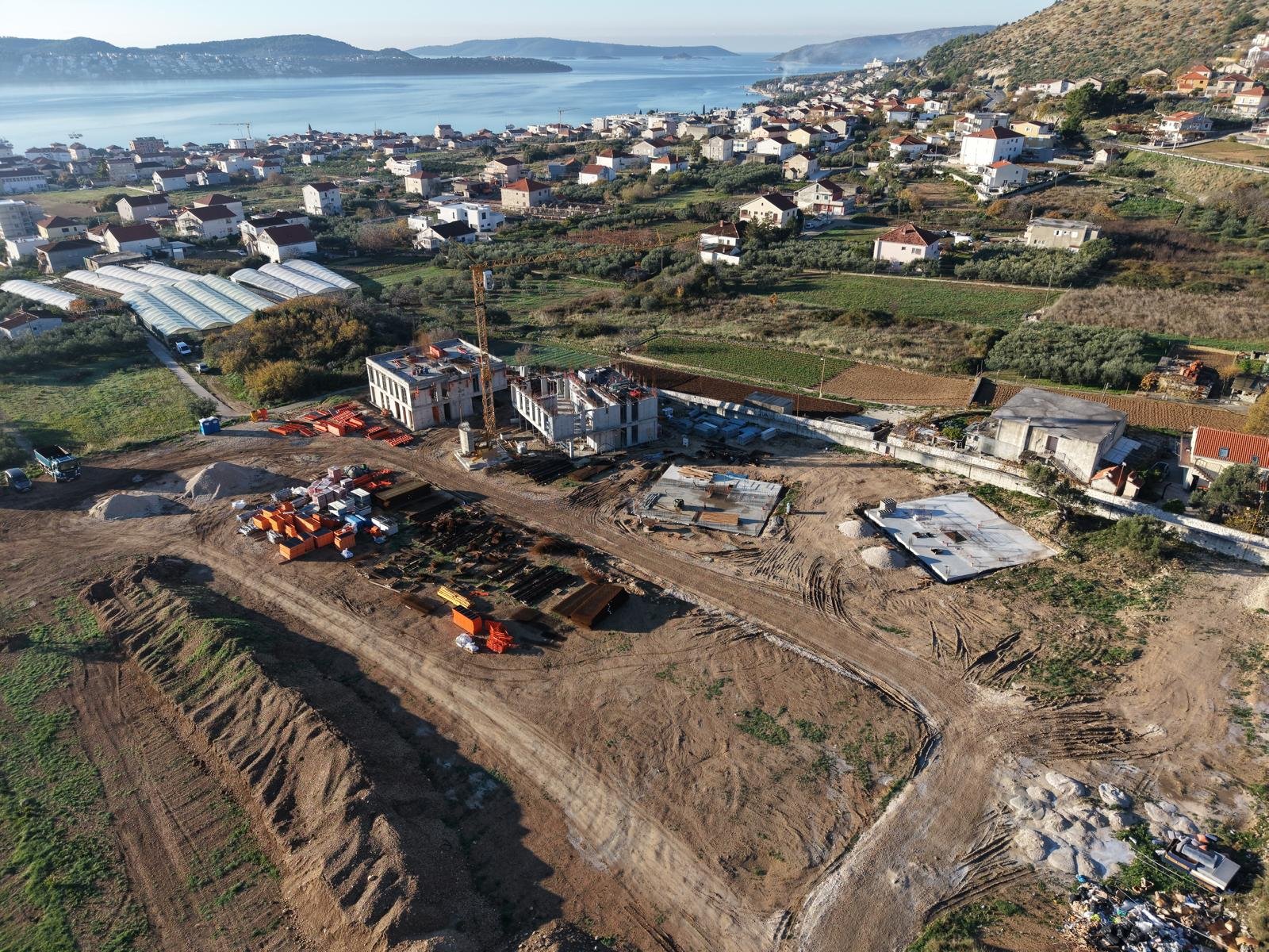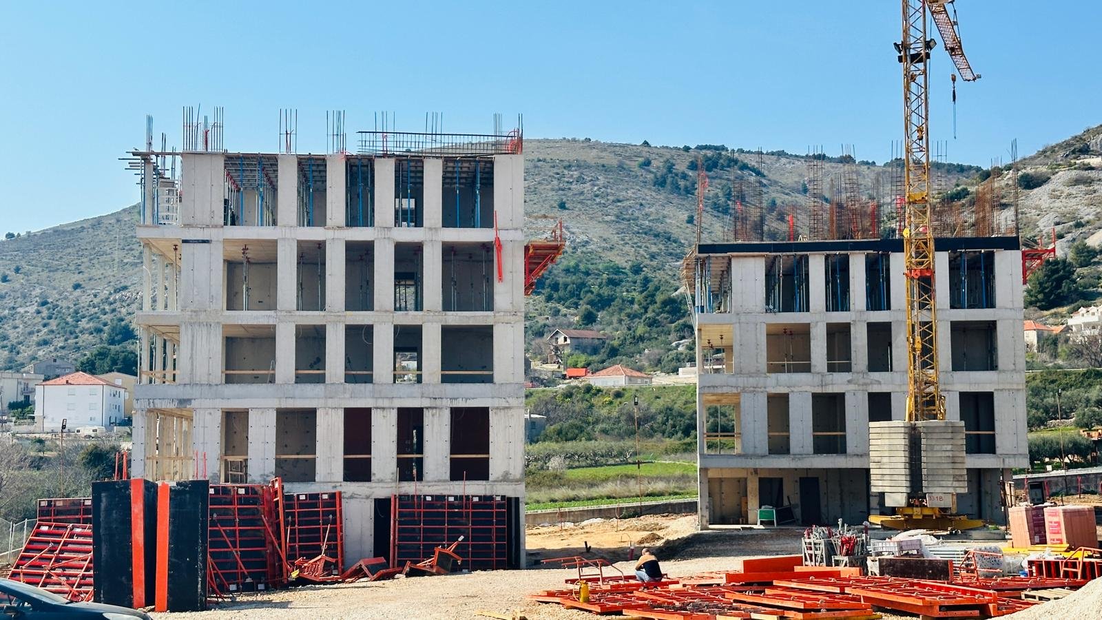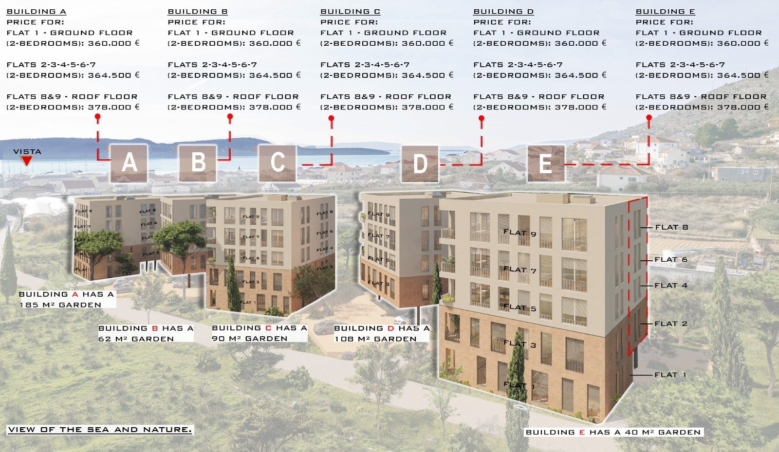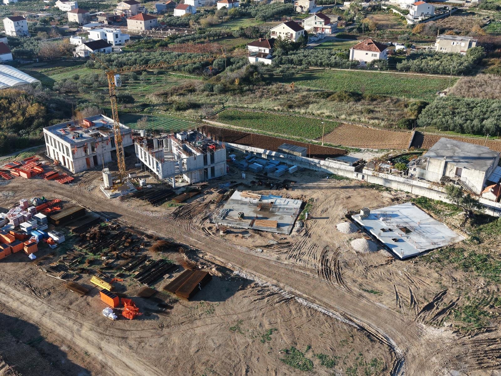 The complex of 5 residential buildings (A, B, C, D, E) located as a micro-urbanism in Seget Donji, offers