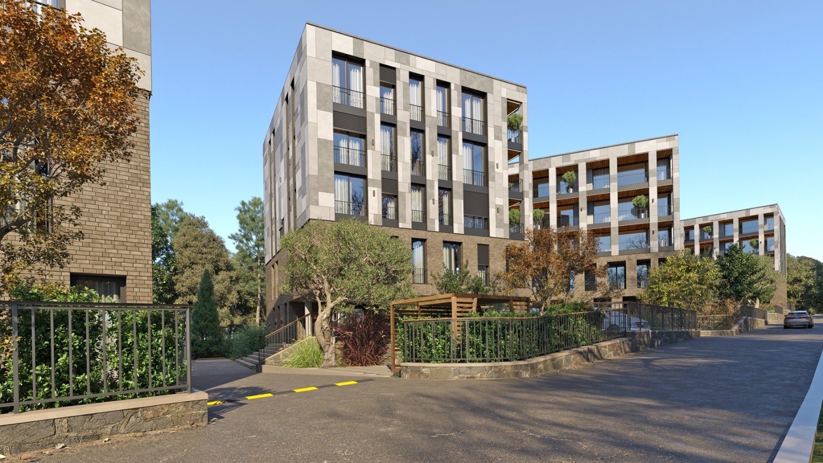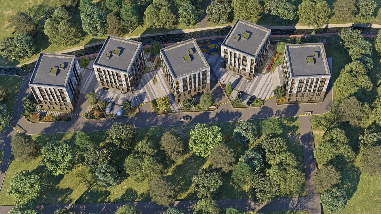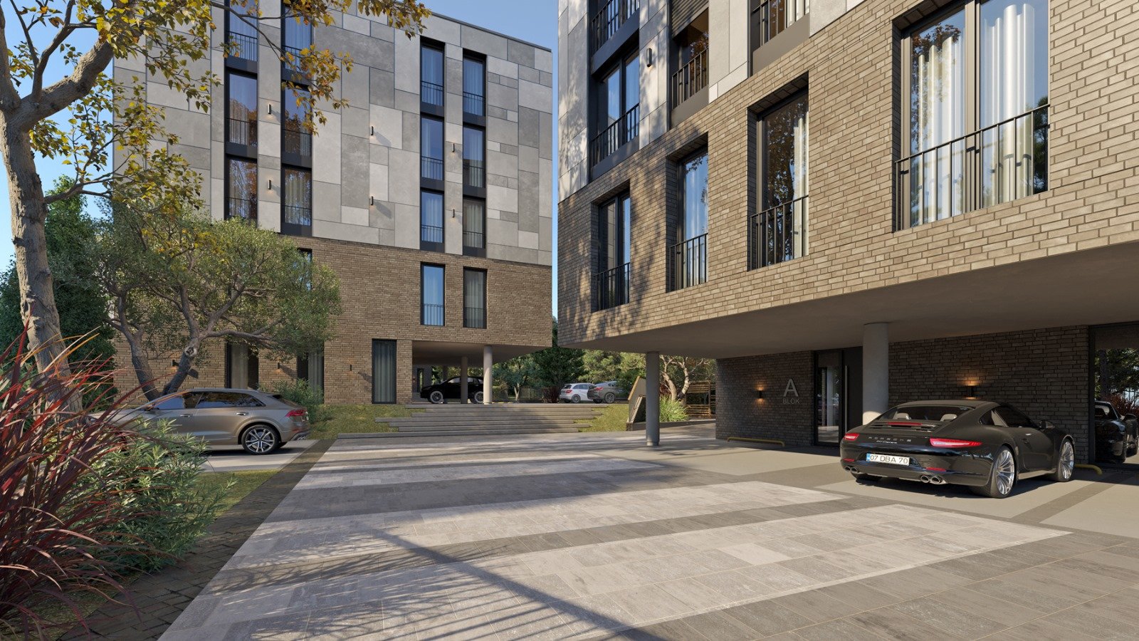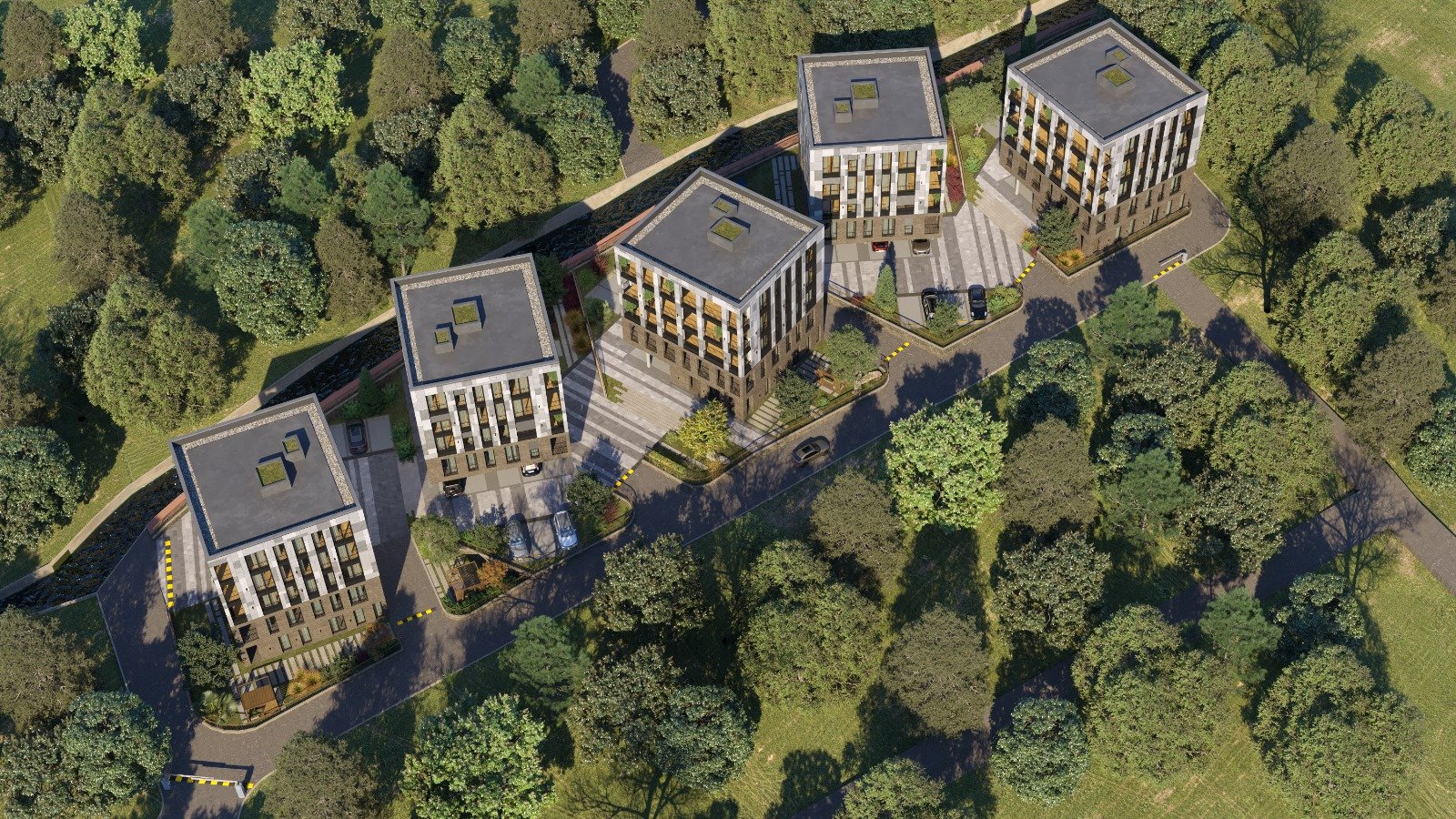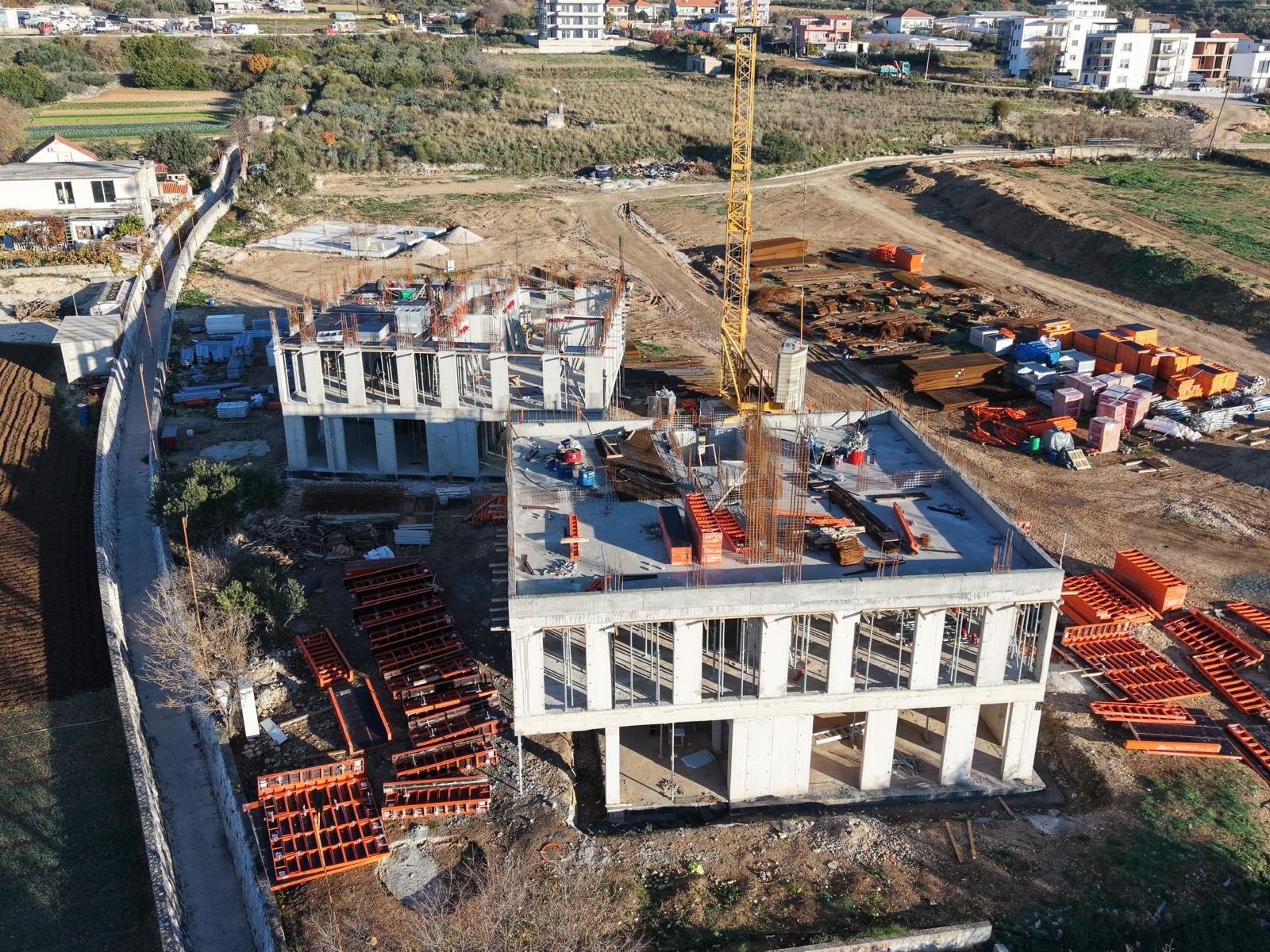 The complex of 5 residential buildings (A, B, C, D, E) located as a micro-urbanism in Seget Donji, offers
